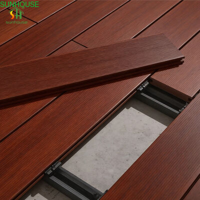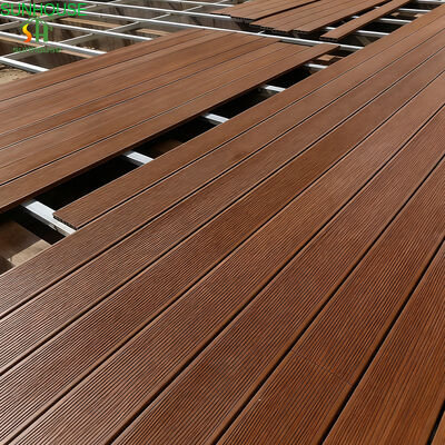 Họa tiết bề mặt được áp dụng thông qua quy trình hoàn thiện ba giai đoạn kết hợp dập nổi 3D, chà nhám và đánh bóng. Cách tiếp cận nhiều lớp này tạo ra một bề mặt trông giống như gỗ tự nhiên cả về thị giác và cảm giác khi đi lại, với đủ vi kết cấu để duy trì độ bám trong điều kiện ẩm ướt. Nhựa HDPE và phụ gia ổn định UV được trộn vào thân tấm ván trước khi ép đùn — khả năng chống chịu thời tiết và độ ổn định màu sắc được tích hợp vào cấu trúc vật liệu, không phụ thuộc vào các lớp xử lý bề mặt bị xuống cấp theo thời gian.